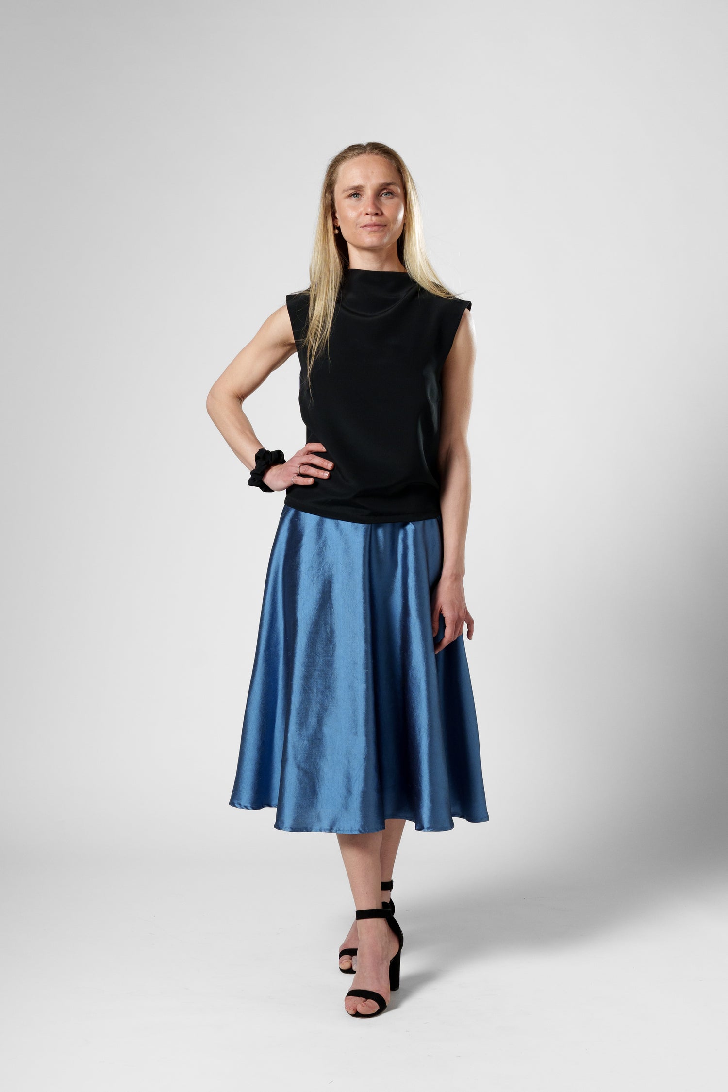 Experience the pure luxury of silk. The Summerblock Skirt is made of beautiful silk dupion fabric. The weave of the fabric creates a beautiful shifting shimmer.