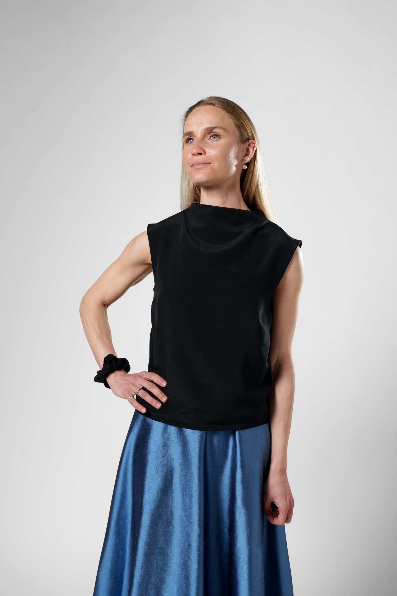It is no coincidence that silk is called the "Queen of textiles". Silk is in our opinion the most elegant fabric in the world and has an amazing feel against the skin and material properties. The skirt is detailed with a long belt with silver eyelets which makes the fit a cocky contribution to your wardrobe.