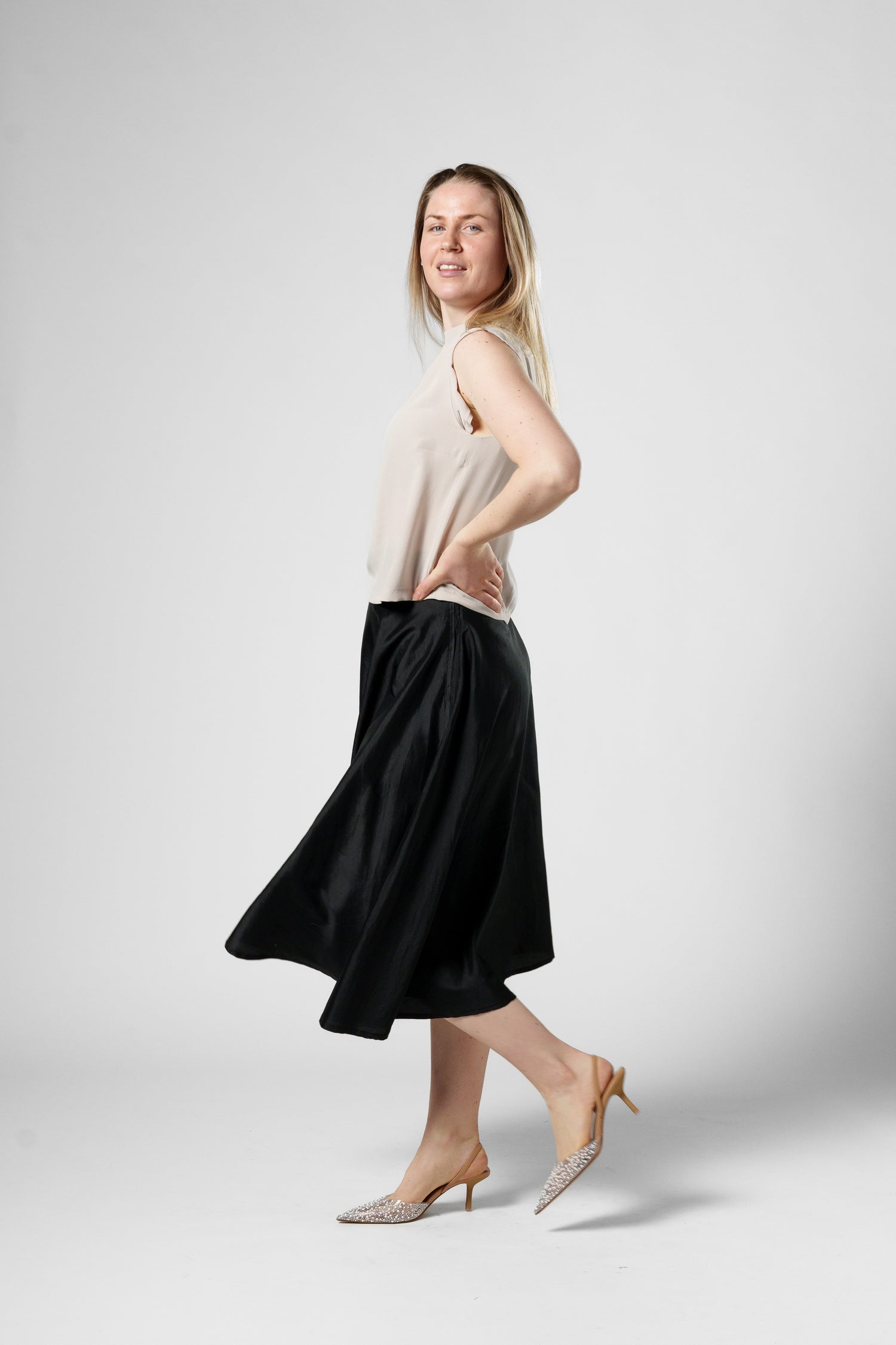 This skirt is made in Sweden and is based on 100% Silk.