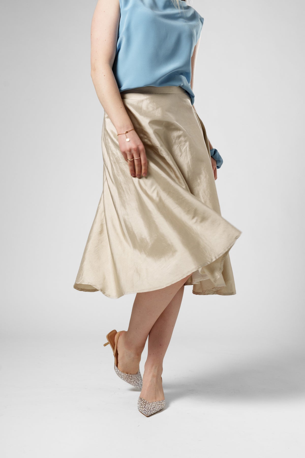 Enhetspris perDenna sidenkjol höjer din stil oberoende om du använder den till vardags eller fest. Den har en elegant skärning som smickrar kroppen och framhäver midjan på ett mjukt sätt.